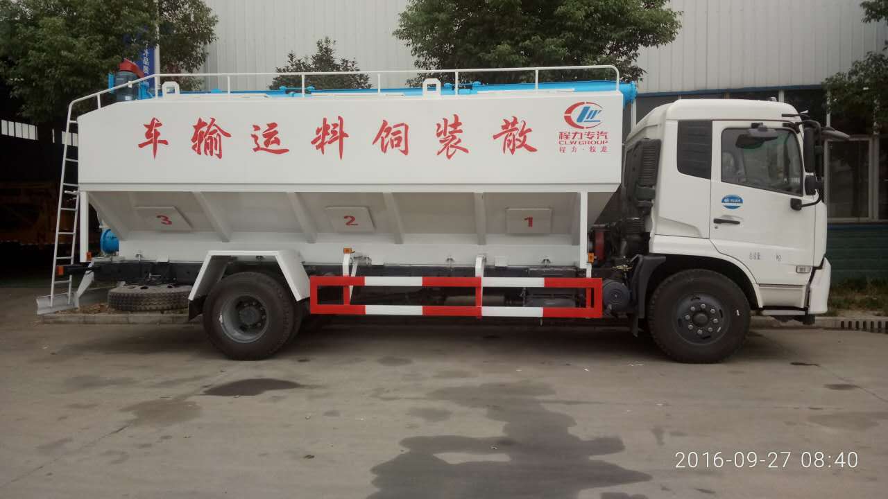 散裝飼料車工作原理:袋料,散裝飼料車在工作的時候首先打開箱體頂部中間兩倉的接料口,裝滿第一種飼料并保證每倉裝載3T然后打開最前及最后兩倉接料口,裝第二種飼料。這兩個倉位常閉倉,設有單獨倉口,因此也可分別裝載兩種飼料,這樣就實現(xiàn)整車裝運三種不同飼料的功能。