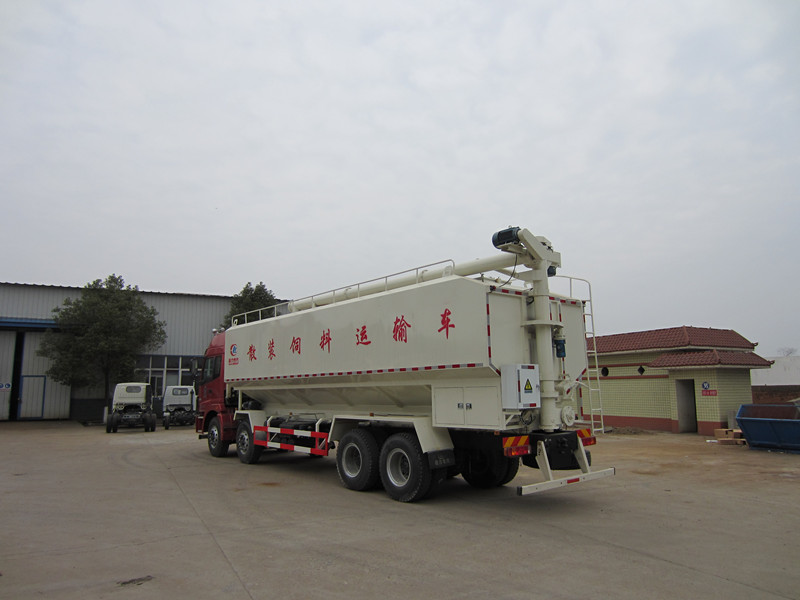 散裝飼料車工作原理:袋料,散裝飼料車在工作的時(shí)候首先打開箱體頂部中間兩倉(cāng)的接料口,裝滿第一種飼料并保證每倉(cāng)裝載3T然后打開最前及最后兩倉(cāng)接料口,裝第二種飼料。這兩個(gè)倉(cāng)位常閉倉(cāng),設(shè)有單獨(dú)倉(cāng)口,因此也可分別裝載兩種飼料,這樣就實(shí)現(xiàn)整車裝運(yùn)三種不同飼料的功能。