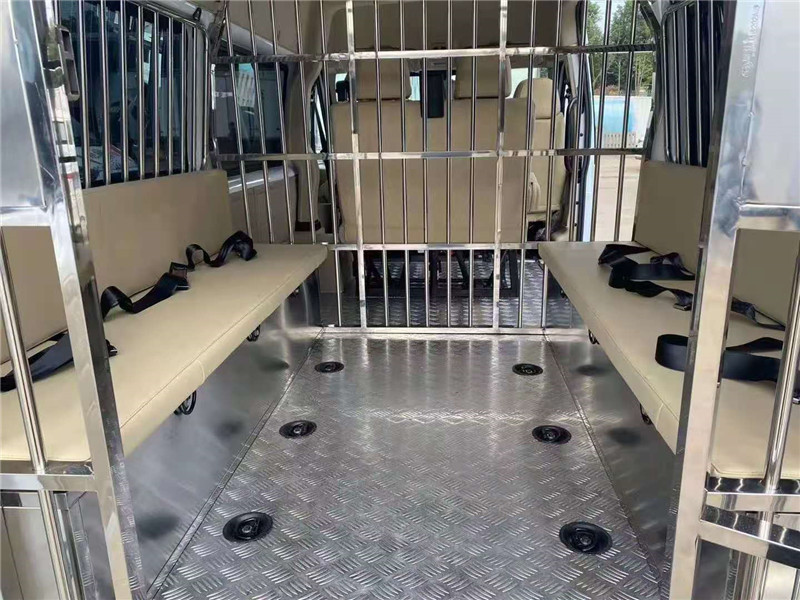 江鈴福特全順法院囚車廠家標(biāo)準(zhǔn)配置:長(zhǎng)排爆閃警燈警報(bào)器總成;外觀標(biāo)識(shí);不銹鋼囚籠; 長(zhǎng)條翻板座椅;車位暴閃照明燈;腳鐐固定環(huán);囚籠前格柵透明有機(jī)玻璃;后部隔斷囚籠。 產(chǎn)品用途:適用于公安、司法押運(yùn)犯人及執(zhí)行任務(wù)。