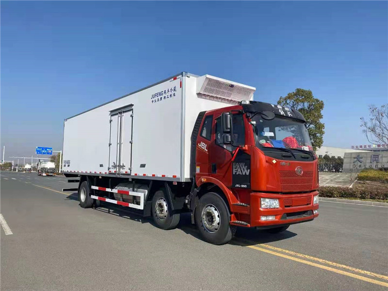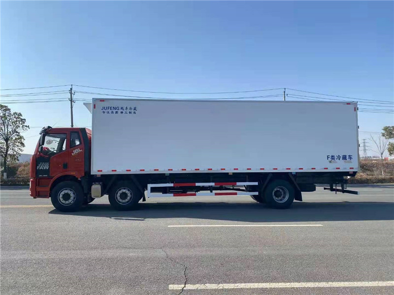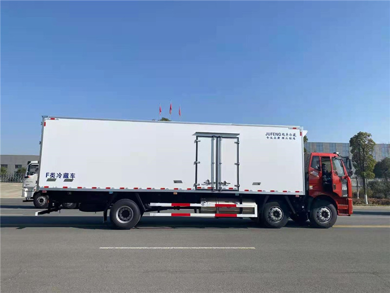 解放天然氣國六9米6冷藏車上裝配置:冷藏箱體內(nèi)尺寸9600×2420×2450(mm),采用木質(zhì)工藝(龍骨連接鑲?cè)氕h(huán)保防水木材起保溫耐腐蝕作用)、斷橋隔熱技術(shù)!保溫效果達(dá)到國家A級標(biāo)準(zhǔn).箱板是由鍍鋅管骨架加上環(huán)保防水木板一次成型,中間8CM保溫板填充、加厚3.0玻璃鋼,高強(qiáng)度粘合劑、熱壓成型,外框采用304不銹鋼、加厚鋁型材包邊、27不銹鋼大門鎖、配件,箱體拼接出來不打膠無縫隙,降溫速度快、散溫慢、保溫效果好,門帶斜邊,副梁是710大梁鋼一次性折成,用壓板鎖緊,側(cè)護(hù)網(wǎng)和后保險杠一次性成型。