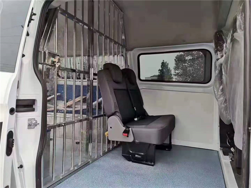 江鈴全順國(guó)六V362警用囚車是針對(duì)公安部門押送囚犯以及抓捕嫌疑人時(shí),臨時(shí)押運(yùn)的車輛。車廂設(shè)有約束區(qū),看管區(qū)以及駕駛區(qū),搭載先進(jìn)的4G傳輸功能,可以把實(shí)時(shí)監(jiān)控圖像傳回指揮中心。