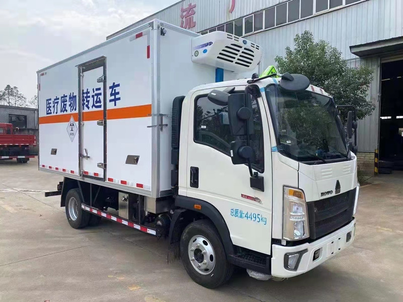 重汽豪沃藍(lán)牌4米2醫(yī)療廢物轉(zhuǎn)運車是一款可上藍(lán)牌的醫(yī)療廢物轉(zhuǎn)運車,采用重汽豪沃1880駕駛室、濰柴130馬力、萬里揚6檔、2.0T/5T、700R16鋼絲胎、帶中控、電窗、皮座椅、氣喇叭、全包裹、車鑰匙遠(yuǎn)程遙控玻璃升降!原廠空調(diào),多功能方向盤,定速巡航。上裝配置:箱體采用外玻璃鋼內(nèi)不銹鋼材質(zhì)制成,5cm保溫板,箱體內(nèi)無死角,加裝噴霧消毒,紫外線滅菌燈,尾部為雙層密封門,防滲漏,污水箱,加裝-5度制冷機(jī)組,低溫消毒。