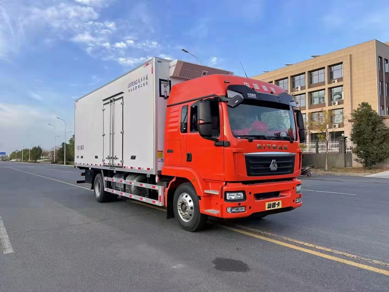 汕德卡國(guó)六6米8冷藏車車輛配置:汕德卡C5H高頂雙臥駕駛室,軸距5200mm,MC07.25-60型發(fā)動(dòng)機(jī),重汽曼270馬力,重汽HW95508STCL變速箱(8檔) 中控鎖 ,電動(dòng)窗 ,電調(diào)后視鏡帶加熱, 多媒體影音屏,行駛記錄儀, 原車空調(diào), 斷氣剎,剎車自調(diào)大臂, 主氣囊座椅 ,電動(dòng)前翻駕駛室 ,400L不銹鋼大油箱 ,9噸級(jí)后橋 速比4.63 ??烧{(diào)節(jié)大燈,剎車自動(dòng)調(diào)整臂。