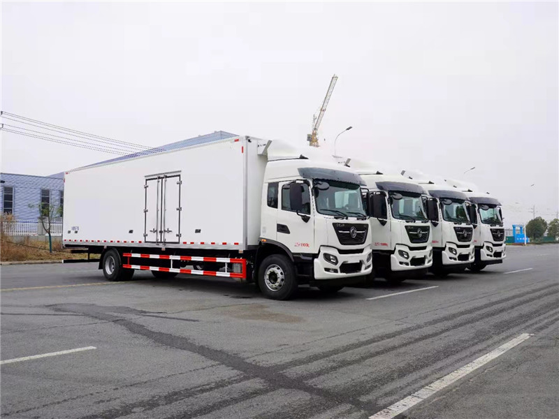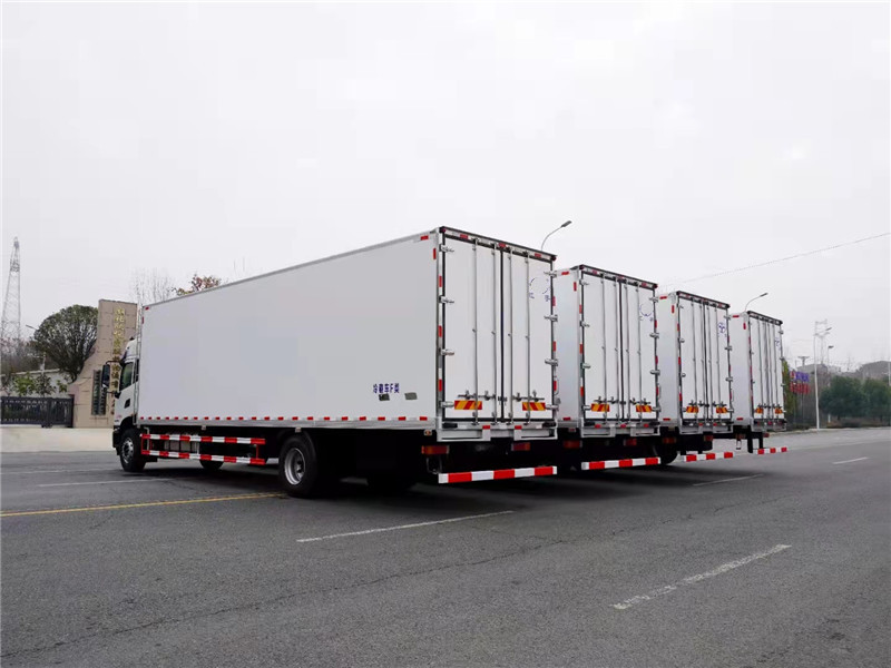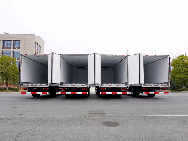 冷藏車廂生產(chǎn)線是國際最先進(jìn)18米大型復(fù)合板材生產(chǎn)線,壓板臺面生產(chǎn)前機(jī)器自動吸塵干凈,保證壓板機(jī)一次壓制成型,其生產(chǎn)設(shè)備及技術(shù)均領(lǐng)先同行業(yè)標(biāo)準(zhǔn),箱體外形美觀,整體質(zhì)量輕,強(qiáng)度高,無滲漏特點,箱體堅固耐用,保溫效果高,采用國際通用三明治工藝+我廠專利木質(zhì)工藝(龍骨連接鑲?cè)氕h(huán)保防水木材起保溫耐腐蝕作用)、斷橋隔熱技術(shù)!保溫效果達(dá)到國家A級標(biāo)準(zhǔn)。冷藏箱體內(nèi)部選裝地板通風(fēng)槽,溫濕度記錄儀,肉鉤導(dǎo)軌等專用配置。制冷設(shè)備選裝國產(chǎn)或進(jìn)口冷凍制冷機(jī)組,最低溫度可達(dá)-18度,可根據(jù)運輸貨物的要求進(jìn)行調(diào)節(jié)。