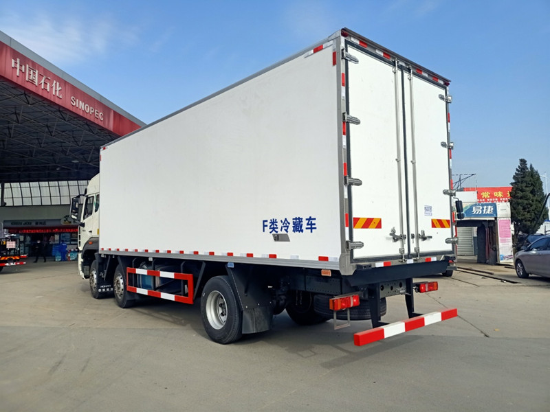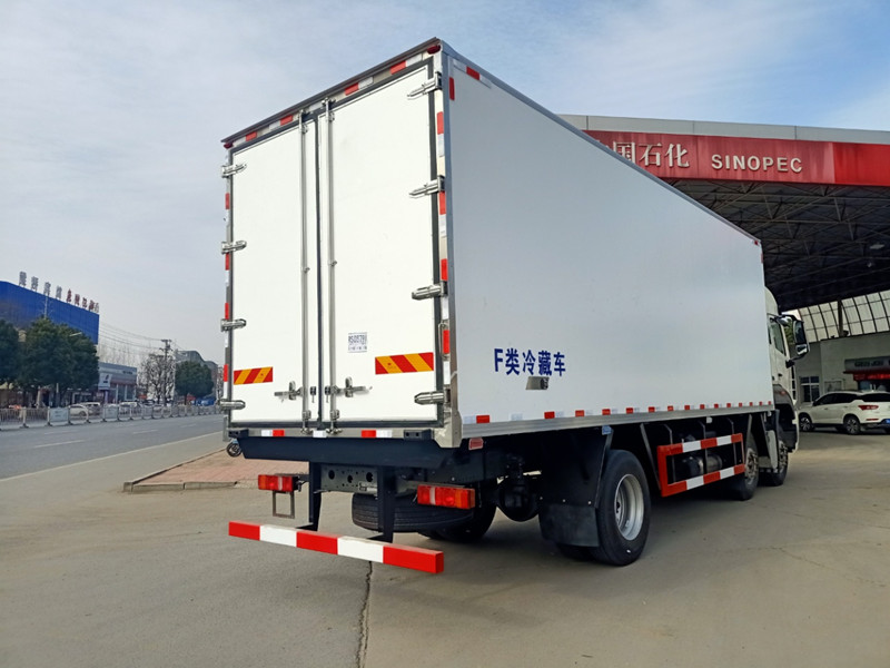 冷藏車箱體是采用國際通用三明治工藝+我廠專利木質(zhì)工藝(龍骨連接鑲入環(huán)保防水木材起保溫耐腐蝕作用)、斷橋隔熱技術,生產(chǎn)線是國際最先進18米大型復合板材生產(chǎn)線,壓板臺面生產(chǎn)前機器自動吸塵干凈,保證壓板機一次壓制成型,其生產(chǎn)設備及技術均領先同行業(yè)標準,箱體外形美觀,整體質(zhì)量輕,強度高,無滲漏特點,箱體堅固耐用,保溫效果高,保溫效果達到國家A級標準。;箱體內(nèi)部吸選裝下沉式滿焊通風槽,溫濕度記錄儀,肉鉤導軌等專用配置。制冷設備選擇美國開利S850,冷王T880獨立制冷機組,選裝凱雪1080非獨立冷機。制冷溫度最低可達-18度,可根據(jù)運輸貨物要求進行調(diào)節(jié)。