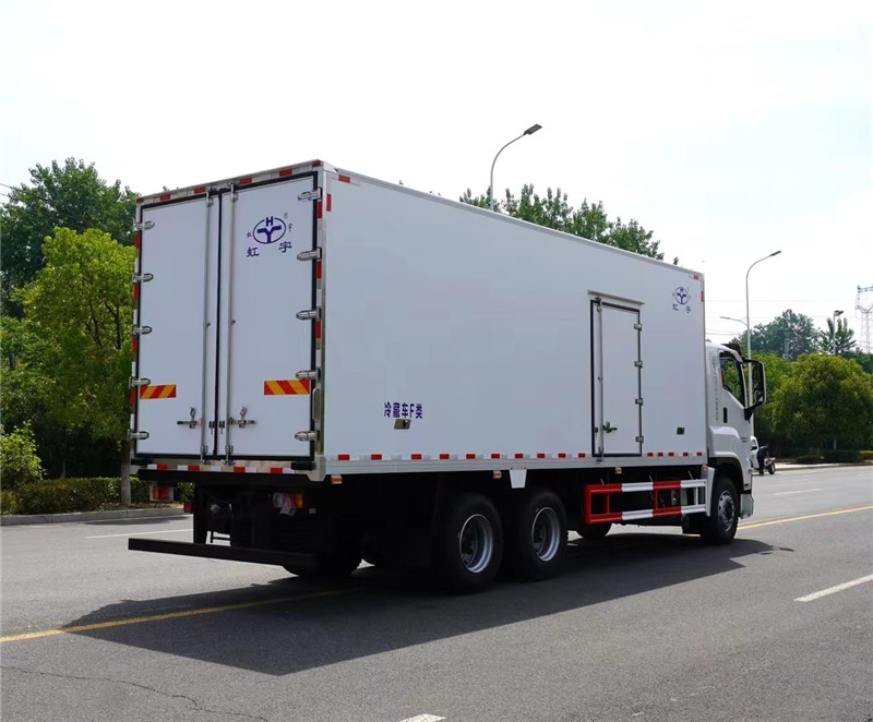 五十鈴巨咖后8輪7米8冷藏車側(cè)門后門采用5層迷宮式橡膠密封條,門框斷橋隔熱處理,高強(qiáng)塑鋼花紋防滑底板,底板圍裙選用15cm寬鋁合金底側(cè)一體式型材,選裝整體式通風(fēng)條和右單側(cè)門,廂內(nèi)可選裝隔斷溫區(qū),頂部安裝照明燈,其他標(biāo)配。選裝肉鉤架廂體。選裝備電和外接市電。廂體副車架采用700特鋼折彎貫穿橫梁加固,標(biāo)準(zhǔn)件螺栓鎖緊。整車鋼件獨(dú)立烤漆再組裝。安裝進(jìn)口開利S850獨(dú)立制冷機(jī)組,最低溫度可達(dá)-18度,可根據(jù)需求進(jìn)行調(diào)節(jié)。