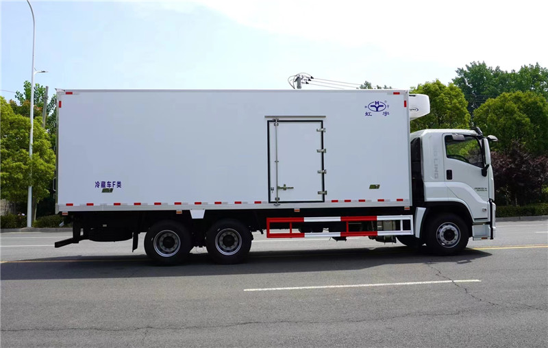 五十鈴巨咖后8輪7米8冷藏車車輛配置:新款五十鈴巨咖5X駕駛室(平頭一排半(2人)、五十鈴300馬力(6HK1-TCG60)發(fā)動機(jī),氣懸駕駛室及氣懸座椅、冷暖空調(diào)、液壓方向助力、離合及剎車助力、定速巡航、多功能液晶儀表盤、電加熱后視鏡),五十鈴6HK1-TCG60發(fā)動機(jī)(國六B排放標(biāo)準(zhǔn)、馬力300HP、扭矩1000N.m 、排量7.79L),法士特9JS119TA 變速箱(具有直接檔和爬坡檔的9檔式、帶同步器、手動式),車橋(前盤后鼓式剎車、后橋速比4.555),驅(qū)動方式:6×4(中后橋帶中央差速鎖),制動系統(tǒng):斷氣剎、ABS、排氣制動,燃油箱(鋁合金400升),輪胎295/80R22.5 18PR。