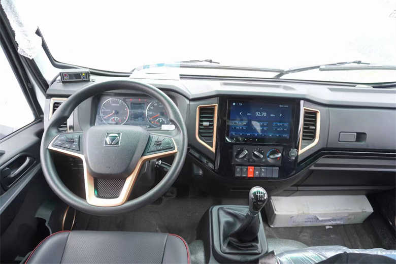 ,該車駕駛室還配置有懸浮式減震駕駛室支撐,配合上氣囊減震座椅,舒適性方面絕對無可挑剔。方向盤采用三幅式多功能設(shè)計,其按鍵區(qū)域集成有多媒體控制、定速巡航、藍(lán)牙電話接聽等功能,操作起來十分方便。