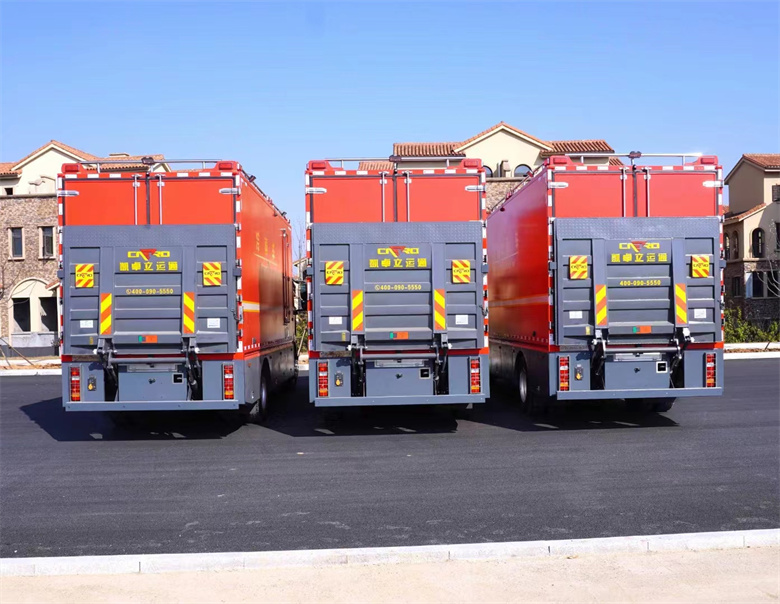 我公司生產(chǎn)的重汽汕德卡消防(應急保障)6米8冷藏車廂體中間安裝有溫控隔溫板,多用途隔離,雙溫雙控,前面冷凍后面冷藏。兩側(cè)共配有8個應急搶險專用箱??蓾M足消防救援后勤保障物資低溫運輸需求。滿足消防人員在外出任務時后勤可以得到保障。
