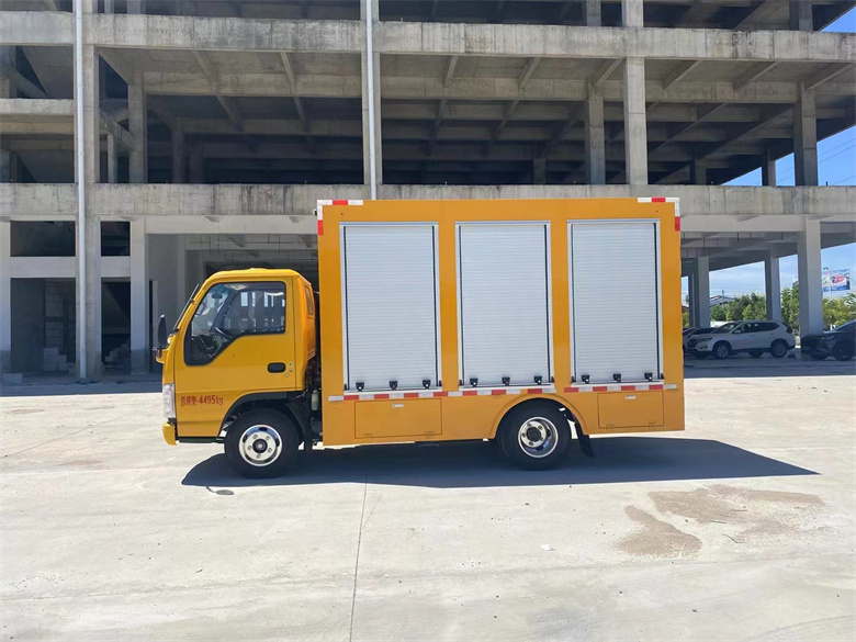 五十鈴鈴咖1000方大流量藍(lán)牌排水搶險(xiǎn)車單泵配40米排水 管(20米/根),水管直徑 DN200mm,水管材質(zhì)為滌綸長絲編織,內(nèi)外涂耐磨防樹脂,耐磨、耐壓、防刺穿,可折疊卷起。軟管為快速接頭連接,操作方便。配備外接電源,箱內(nèi)配備滿足5KW功率輸出、電壓380V插座1只,220V通用插座1只。可以供電焊機(jī)使用或者別的電器件使用,車廂內(nèi)安裝LED照明燈。在啟動(dòng)發(fā)電機(jī)組時(shí)采用發(fā)電機(jī)組供電,發(fā)電機(jī)組停機(jī)時(shí)采用車輛直流電瓶電源供電,可實(shí)現(xiàn)便捷切換。車輛兩側(cè)各配四只共八只紅白爆閃警燈,對行人及過往車輛起到警示作用。