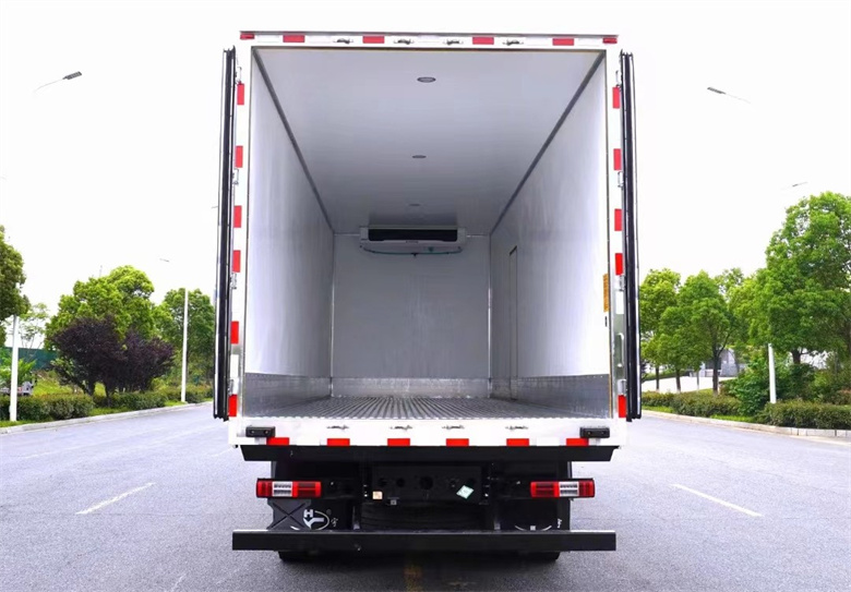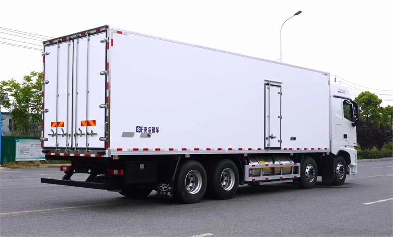 歐曼星輝前四后八9米6燃?xì)饫洳剀?chē)標(biāo)準(zhǔn)配置:冷藏箱體內(nèi)尺寸9350x2450X2500(mm), 《颶豐第四代標(biāo)準(zhǔn)化生產(chǎn)冷藏廂體》采用斷橋隔熱設(shè)計(jì)降低導(dǎo)熱;榫卯合箱技術(shù),整體框架結(jié)構(gòu),牢固耐用;全密封雙組合聚氨酯膠粘連保溫效果持久;廂體保溫板厚度為200px;不銹鋼包角;鋁合金包邊;廂體內(nèi)部采用LED照明燈及廂體示寬燈;后門(mén)框?yàn)榧雍癫讳P鋼門(mén)飾;密封條為三元乙丙橡膠黑色密封條(新款5葉片帶鋁合金壓條)后門(mén)+側(cè)門(mén)為全包圍密封條;側(cè)門(mén)框?yàn)榻^熱PVC+加厚不銹鋼材質(zhì);廂體內(nèi)前端加裝2個(gè)排水孔;2個(gè)防撞膠塊;副梁整體為輕量化高強(qiáng)鋼;壓板+U型栓+橡膠鋼絲墊皮+護(hù)網(wǎng)+擋泥板+3M反光膠板為標(biāo)準(zhǔn)件;制冷設(shè)備選裝開(kāi)利或冷王獨(dú)立制冷機(jī)組。