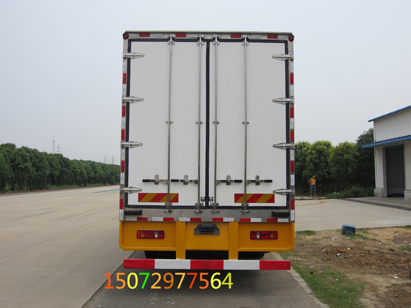 標(biāo)準(zhǔn)配置:箱體尺寸長(zhǎng)×寬×高為:7400×2280×2400,約40立方,廂體厚度為8厘米。冷藏廂體內(nèi)外板材采用冷藏車(chē)專(zhuān)用玻璃鋼,(可反射陽(yáng)光),中間夾層為聚氨酯發(fā)泡隔熱材料,(防火阻燃隔熱),千噸壓機(jī)壓制而成,配置箱體全為不銹鋼鎖件,不銹鋼包角,不銹鋼門(mén)框,帶有頂燈及防撞塊。廂體底部為鋁花紋板。我廠的冷藏保溫車(chē)保溫材料選用進(jìn)口級(jí)別XPS,吸水率≤1,導(dǎo)熱系數(shù)≤0.028W/mk,抗壓≥150Kpa,密度30~45kg/m3,使用國(guó)際上最為先進(jìn)的第五代全封閉聚氨酯板塊粘接結(jié)構(gòu),廂板表面材料有玻璃鋼、不銹鋼、鋁合金、彩鋼板等材料可供選擇,廂體成型后具有質(zhì)量輕,保溫系數(shù)高,抗沖擊力強(qiáng),無(wú)滲漏等優(yōu)點(diǎn),對(duì)大氣、水和酸、堿、鹽等介質(zhì)具有良好的耐腐蝕性和抗老化性。通過(guò)優(yōu)化設(shè)計(jì),降低了整車(chē)質(zhì)心,增大了有效容積。經(jīng)測(cè)試,整車(chē)綜合節(jié)能率,使用壽命,比一般冷藏保溫廂高1~2倍。
