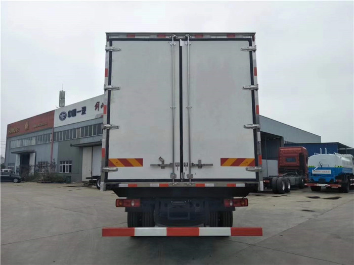 標準配置:箱體尺寸長×寬×高為:6100×2280×2300,約32立方,廂體厚度為8厘米。冷藏廂體內(nèi)外板材采用冷藏車專用玻璃鋼,(可反射陽光),中間夾層為聚氨酯發(fā)泡隔熱材料,(防火阻燃隔熱),千噸壓機壓制而成,配置箱體全為不銹鋼鎖件,不銹鋼包角,不銹鋼門框,帶有頂燈及防撞塊。廂體底部為鋁花紋板。我廠的冷藏保溫車保溫材料選用進口級別XPS,吸水率≤1,導(dǎo)熱系數(shù)≤0.028W/mk,抗壓≥150Kpa,密度30~45kg/m3,使用國際上最為先進的第五代全封閉聚氨酯板塊粘接結(jié)構(gòu),廂板表面材料有玻璃鋼、不銹鋼、鋁合金、彩鋼板等材料可供選擇,廂體成型后具有質(zhì)量輕,保溫系數(shù)高,抗沖擊力強,無滲漏等優(yōu)點,對大氣、水和酸、堿、鹽等介質(zhì)具有良好的耐腐蝕性和抗老化性 。通過優(yōu)化設(shè)計,降低了整車質(zhì)心,增大了有效容積。經(jīng)測試,整車綜合節(jié)能率,使用壽命,比一般冷藏保溫廂高1~2倍。