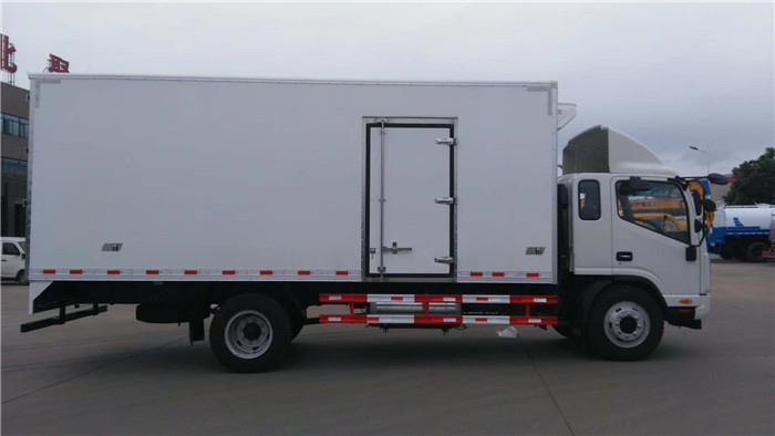 廂體尺寸6200×2220×2300(mm)約32立方,廂體厚度為8厘米。內(nèi)外板材采用冷藏車專用玻璃鋼,(可反射陽光),中間夾層為聚氨酯發(fā)泡隔熱材料,(防火阻燃隔熱)真空復(fù)合粘接而成,配置箱體全為不銹鋼鎖件,不銹鋼包角,不銹鋼門框,帶有頂燈及防撞塊。廂體底部為鋁花紋板。我廠的冷藏保溫車保溫材料選用進(jìn)口級別XPS,吸水率≤1,導(dǎo)熱系數(shù)≤0.028W/mk,抗壓≥150Kpa,密度30~45kg/m3,使用國際上最為先進(jìn)的第五代全封閉聚氨酯板塊粘接結(jié)構(gòu),廂板表面材料有玻璃鋼、不銹鋼、鋁合金、彩鋼板等材料可供選擇,廂體成型后具有質(zhì)量輕,保溫系數(shù)高,抗沖擊力強(qiáng),無滲漏等優(yōu)點(diǎn),對大氣、水和酸、堿、鹽等介質(zhì)具有良好的耐腐蝕性和抗老化性 。通過優(yōu)化設(shè)計,降低了整車質(zhì)心,增大了有效容積。經(jīng)測試,整車綜合節(jié)能率,使用壽命,比一般冷藏廂保溫高1~2倍。