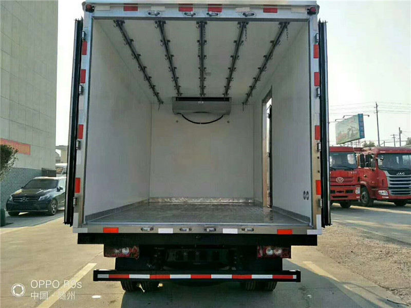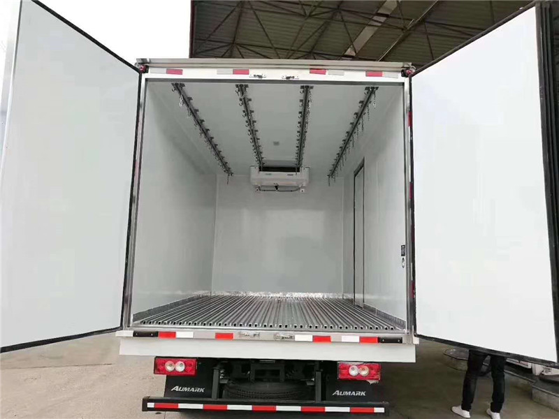 4米2歐馬可S3豬白條肉掛鉤冷藏車標準配置:箱體尺寸長×寬×高為:4085×2100×2100約18立方,廂體厚度為8厘米。內(nèi)外板材采用冷藏車專用玻璃鋼,(可反射陽光),中間夾層為聚氨酯發(fā)泡隔熱材料,(防火阻燃隔熱)大型千噸壓力機壓制而成,配置箱體全為不銹鋼鎖件,不銹鋼包角,不銹鋼門框,箱體底板為鋁花紋板,帶有頂燈及防撞塊。我廠的冷藏保溫車保溫材料選用進口級別XPS,吸水率≤1,導熱系數(shù)≤0.028W/mk,抗壓≥150Kpa,密度30~45kg/m3,使用國際上最為先進的第五代全封閉聚氨酯板塊粘接結(jié)構(gòu),廂板表面材料有玻璃鋼、不銹鋼、鋁合金、彩鋼板等材料可供選擇,廂體成型后具有質(zhì)量輕,保溫系數(shù)高,抗沖擊力強,無滲漏等優(yōu)點,對大氣、水和酸、堿、鹽等介質(zhì)具有良好的耐腐蝕性和抗老化性 。通過優(yōu)化設(shè)計,降低了整車質(zhì)心,增大了有效容積。經(jīng)測試,整車綜合節(jié)能率,使用壽命,比一般冷藏保溫廂高1~2倍。底盤加裝鋁合金通風槽,廂體頂部加裝4排或5排肉鉤導軌!