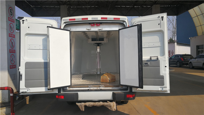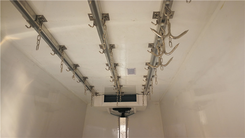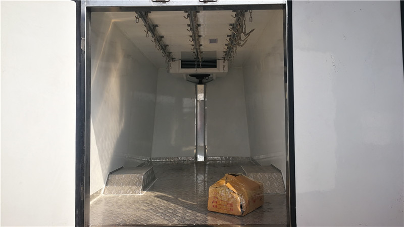 依維柯8.4方后雙輪肉鉤面包冷藏車標準配置:箱體尺寸為3320x1560x1620約8.4方。內(nèi)外板材采用冷藏車專用玻璃鋼,(可反射陽光),中間夾層為聚氨酯發(fā)泡隔熱材料,(防火阻燃隔熱)大型千噸壓力機壓制而成,配置箱體全為不銹鋼鎖件,不銹鋼包角,不銹鋼門框,帶有頂燈及防撞塊。我廠的冷藏保溫車保溫材料選用進口級別XPS,吸水率≤1,導熱系數(shù)≤0.028W/mk,抗壓≥150Kpa,密度30~45kg/m3,使用國際上最為先進的第五代全封閉聚氨酯板塊粘接結(jié)構(gòu),廂板表面材料有玻璃鋼、不銹鋼、鋁合金、彩鋼板等材料可供選擇,廂體成型后具有質(zhì)量輕,保溫系數(shù)高,抗沖擊力強,無滲漏等優(yōu)點,對大氣、水和酸、堿、鹽等介質(zhì)具有良好的耐腐蝕性和抗老化性 。通過優(yōu)化設(shè)計,降低了整車質(zhì)心,增大了有效容積。經(jīng)測試,整車綜合節(jié)能率,使用壽命,比一般冷藏保溫廂高1~2倍。廂體加裝3排肉鉤導軌,安裝國產(chǎn)-15度制冷機組,配備30個不銹鋼肉鉤。