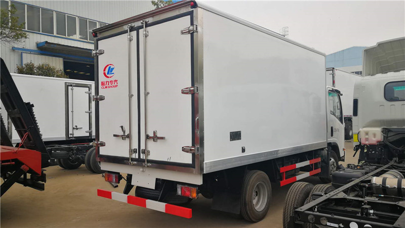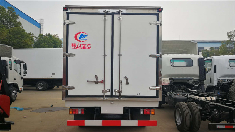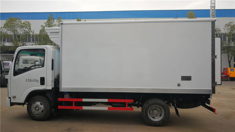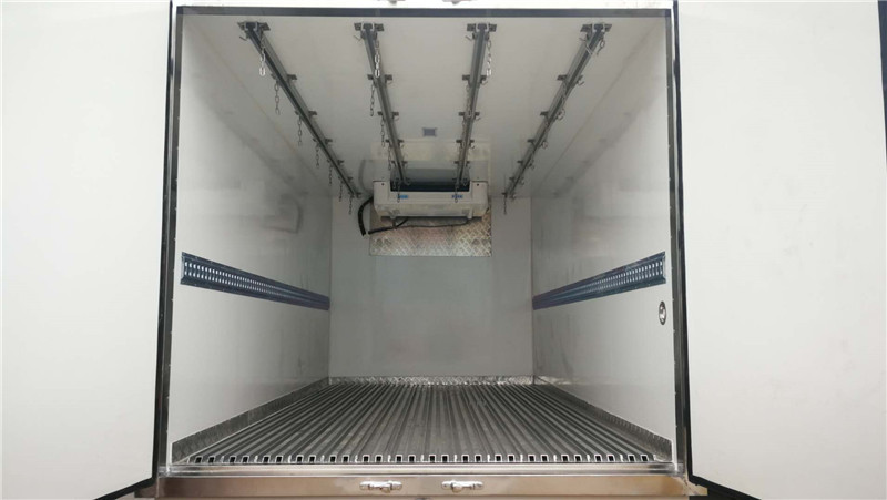 五十鈴KV600國五4米2豬白條肉掛鉤冷藏車標(biāo)準(zhǔn)配置:箱體尺寸長×寬×高為:4015×2100×1800,15.17立方,廂體厚度為8厘米。內(nèi)外板材采用冷藏車專用玻璃鋼,(可反射陽光),中間夾層為聚氨酯發(fā)泡隔熱材料,(防火阻燃隔熱),配置箱體全為不銹鋼鎖件,不銹鋼包角,不銹鋼門框,帶有頂燈及防撞塊。我廠的冷藏保溫車保溫材料選用進(jìn)口級別XPS,吸水率≤1,導(dǎo)熱系數(shù)≤0.028W/mk,抗壓≥150Kpa,密度30~45kg/m3,使用國際上最為先進(jìn)的第五代全封閉聚氨酯板塊粘接結(jié)構(gòu),廂板表面材料有玻璃鋼、不銹鋼、鋁合金、彩鋼板等材料可供選擇,廂體成型后具有質(zhì)量輕,保溫系數(shù)高,抗沖擊力強,無滲漏等優(yōu)點,對大氣、水和酸、堿、鹽等介質(zhì)具有良好的耐腐蝕性和抗老化性 。通過優(yōu)化設(shè)計,降低了整車質(zhì)心,增大了有效容積。經(jīng)測試,整車綜合節(jié)能率,使用壽命,比一般冷藏保溫廂高1~2倍。廂體采用加強型肉鉤骨架,廂體加裝4排肉鉤導(dǎo)軌,地板加裝鋁合金通風(fēng)槽,廂體兩邊加裝卡槽,方便固定豬肉。