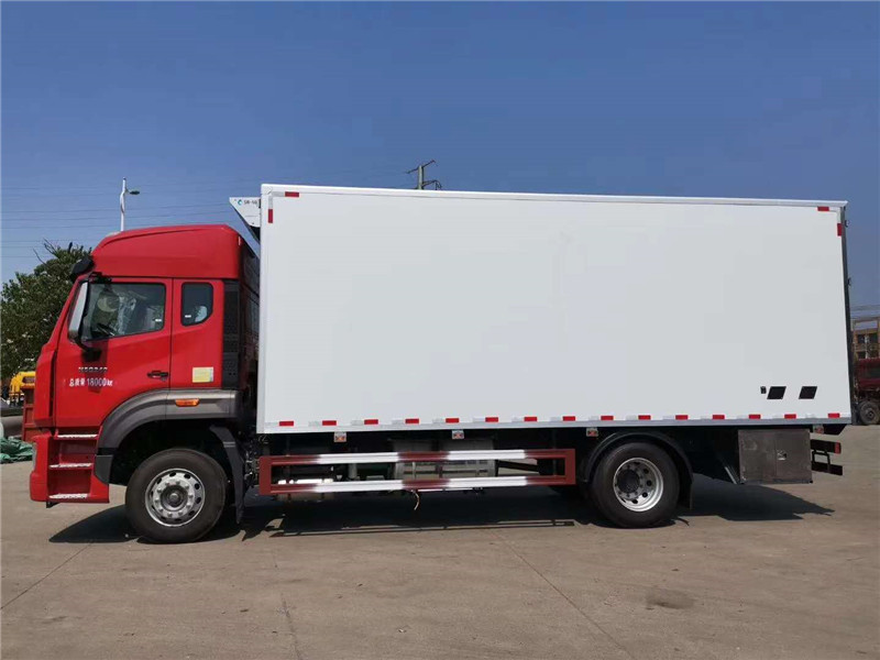 重汽豪瀚高頂雙臥德國曼240馬力6米8冷藏車標準配置:冷藏箱體斷橋隔熱工藝、整體結構框架;內外玻璃鋼板夾聚氨酯保溫層真空復合而成,底板為鋁花紋板,龍骨斷橋為松木復合板;木質隔溫結構;廂體厚度為8cm;不銹鋼包角;最新款鋁合金包邊型材;廂體內部采用2個LED照明燈;后門框為2mm厚不銹鋼材質;門框密封條為橡膠材質;加厚型不銹鋼鉸鏈及鎖件;副駕駛邊開雙開門,廂體四周加裝鋁花紋板。,配件箱體全為不銹鋼鎖件,不銹鋼包角,不銹鋼門框,帶有頂燈及防撞塊。廂體內部裝有照明燈和誤操作報警器,加裝鋁合金材質導風槽,導風槽可是廂體底部均勻的吹到冷風,廂板表面材料有玻璃鋼、不銹鋼、鋁合金、彩鋼板等材料可供選擇,廂體成型后具有質量輕,保溫系數高,抗沖擊力強,無滲漏等優(yōu)點,對大氣、水和酸、堿、鹽等介質具有良好的耐腐蝕性和抗老化性 。通過優(yōu)化設計,降低了整車質心,增大了有效容積。