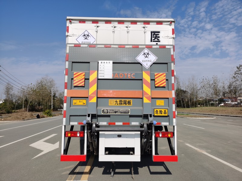 東風(fēng)天錦國六6米8醫(yī)療廢物轉(zhuǎn)運車標(biāo)準(zhǔn)配置:運輸醫(yī)療垃圾的保溫箱體采用外玻璃鋼內(nèi)不銹鋼材質(zhì),中間夾8CM保溫板,鋁合金包邊,不銹鋼門框,鎖件,箱體尺寸為6800x2400X2400(mm),采用密閉性運輸,后門為雙層密閉結(jié)構(gòu),并采用迷宮式密封條,使車廂完全封閉,以達到防止醫(yī)療垃圾病菌病毒的擴散作用.廂體內(nèi)壁板采用不銹鋼板,可用腐蝕性消毒進行消毒,車廂底部四周及轉(zhuǎn)角圓滑處理,宜清理死角,便于消毒。車廂體具有紫外線消毒殺菌功能。紫外線燈正常工作時,輻射出大量的253.7nm紫外線,對微生物具有極強的殺傷力,在30-45分鐘內(nèi)殺滅細菌。產(chǎn)品具有密閉、防滲、防塵等性能;具備抗菌、阻燃、耐腐蝕、易清洗消毒等功能。根據(jù)“醫(yī)療廢物管理條例”規(guī)定,醫(yī)療廢物轉(zhuǎn)運車輛必須采用帶有“醫(yī)療廢物”標(biāo)識和符合環(huán)保要求的專用車輛。