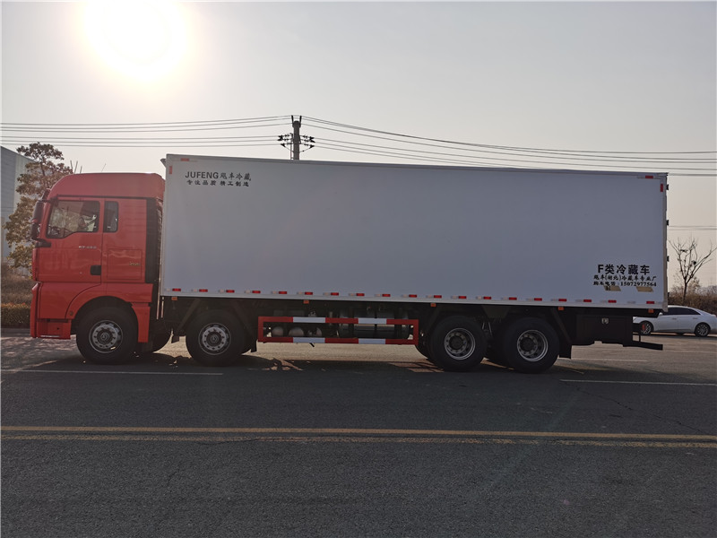 汕德卡自動擋480馬力前四后八9米6冷藏車冷藏箱上裝配置:斷橋隔熱工藝、整體結(jié)構(gòu)框架;內(nèi)外玻璃鋼板夾聚氨酯保溫層真空復(fù)合而成,底板為玻璃鋼板,箱體副駕駛邊開側(cè)門,地板加裝加厚矩形通風(fēng)槽,前后封口,龍骨斷橋?yàn)樗赡緩?fù)合板;木質(zhì)隔溫結(jié)構(gòu);廂體厚度為8cm;不銹鋼包角;最新款鋁合金包邊型材;外框采用304不銹鋼、加厚鋁型材包邊、27不銹鋼大門鎖、配件,箱體拼接出來不打膠無縫隙,降溫速度快、散溫慢、保溫效果好,門帶斜邊,副梁是710大梁鋼一次性折成,用壓板鎖緊,側(cè)護(hù)網(wǎng)和后保險(xiǎn)杠一次性成型。