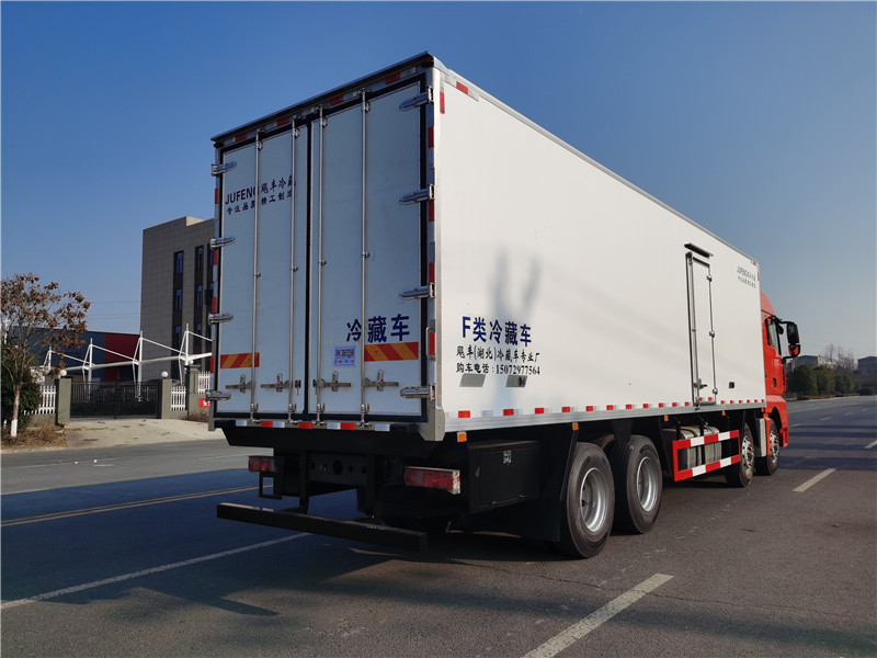 冷藏車廠生產(chǎn)線是國際最先進(jìn)18米大型復(fù)合板材生產(chǎn)線,壓板臺面生產(chǎn)前機(jī)器自動吸塵干凈,保證壓板機(jī)一次壓制成型,其生產(chǎn)設(shè)備及技術(shù)均領(lǐng)先同行業(yè)標(biāo)準(zhǔn),箱體外形美觀,整體質(zhì)量輕,強(qiáng)度高,無滲漏特點(diǎn),箱體堅(jiān)固耐用,箱體副梁 兩邊加裝工具箱,加裝剎車淋水器,箱體內(nèi)部加裝5排肉鉤導(dǎo)軌,用于豬白條,牛羊肉運(yùn)輸,地板加裝加厚通風(fēng)槽,前后封口,箱體底部前方左右兩邊各開2個出水孔,制冷設(shè)備安裝鄭州凱雪1090超薄制冷機(jī)組,制冷最低溫度可達(dá)-18度,可根據(jù)運(yùn)輸貨物實(shí)際要求進(jìn)行調(diào)節(jié)。