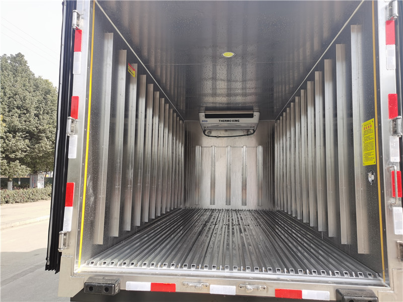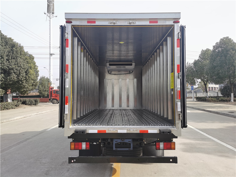 江鈴順達國六4米2藥品疫苗冷藏車上裝配置:箱體內(nèi)尺寸4100x1750X1750(mm),斷橋隔熱工藝、整體結構框架;外玻璃鋼板夾聚氨酯保溫層真空復合而成,內(nèi)板材為不銹鋼板,底板為玻璃鋼板,箱體副駕駛邊開側門,地板加裝加厚矩形通風槽,廂體內(nèi)部四周加裝不銹鋼通風槽,用于藥品疫苗冷鏈配送,龍骨斷橋為松木復合板;木質(zhì)隔溫結構;廂體厚度為8cm;不銹鋼包角;最新款鋁合金包邊型材;廂體內(nèi)部安裝2個LED照明燈;后門框為2mm厚不銹鋼材質(zhì);門框密封條為橡膠材質(zhì);加厚型不銹鋼鉸鏈及鎖件;制冷設備安裝進口冷王380制冷機組,最低溫度可達-15度。