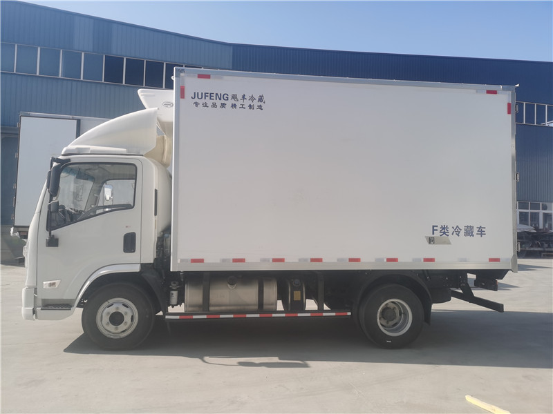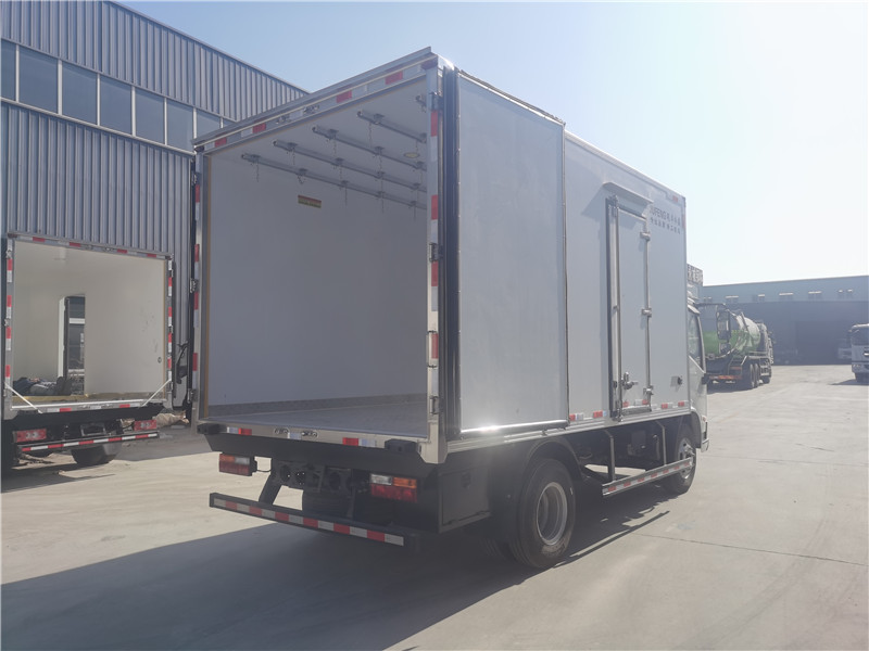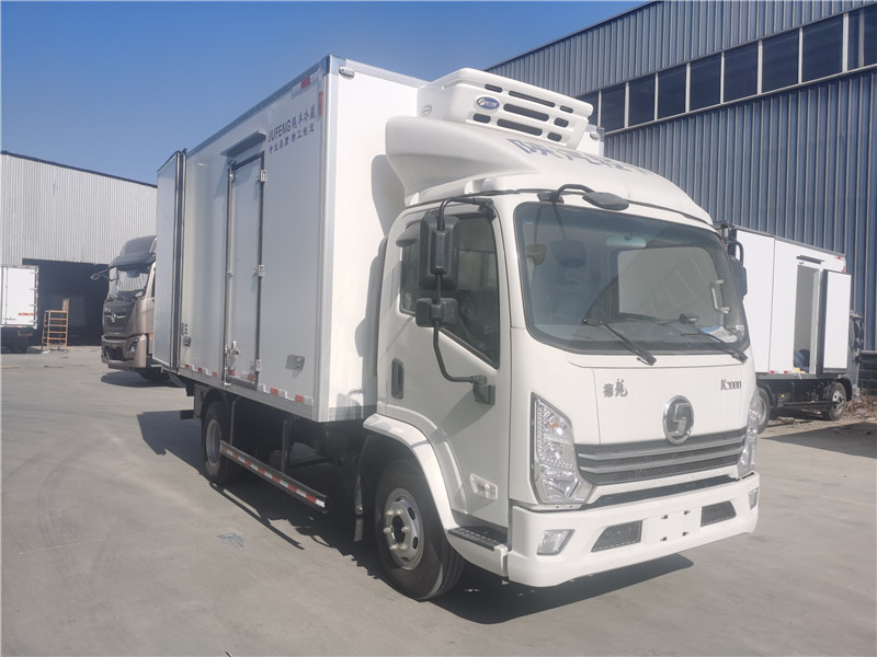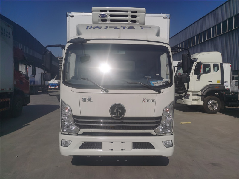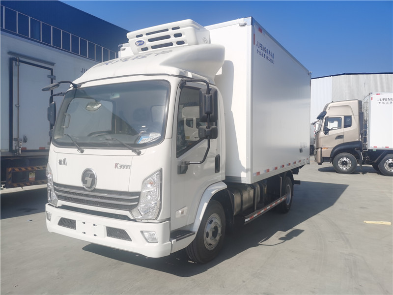 陜汽德龍K3000國六4米2藍(lán)牌冷藏車上裝配置:冷藏箱體采用斷橋隔熱工藝,箱體內(nèi)尺寸4080x2100×2000(mm),箱板是由鍍鋅管骨架加上環(huán)保防水木板一次成型,中間8CM保溫板填充、加厚3.0玻璃鋼,高強(qiáng)度粘合劑、熱壓成型,外框采用304不銹鋼、加厚鋁型材包邊、27不銹鋼大門鎖、配件,箱體拼接出來不打膠無縫隙,降溫速度快、散溫慢、保溫效果好,門帶斜邊,副梁是710大梁鋼一次性折成,用壓板鎖緊,側(cè)護(hù)網(wǎng)和后保險(xiǎn)杠一次性成型。壓板臺面生產(chǎn)前機(jī)器自動吸塵干凈,保證壓板機(jī)一次壓制成型,其生產(chǎn)設(shè)備及技術(shù)均領(lǐng)先同行業(yè)標(biāo)準(zhǔn),箱體外形美觀,整體質(zhì)量輕,強(qiáng)度高,無滲漏特點(diǎn),箱體堅(jiān)固耐用,保溫效果高。