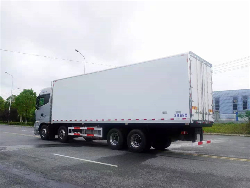 歐曼EST高頂雙臥580馬力前四后八9米6冷藏車上裝配置:冷藏保溫箱體尺寸:9350*2430*2500(mm),箱板是由鍍鋅管骨架加上環(huán)保防水木板一次成型,中間8CM新型環(huán)保輕量化保溫材料,加厚3.0玻璃鋼,高強(qiáng)度粘合劑、熱壓成型,外框采用304不銹鋼、加厚鋁型材包邊、27不銹鋼大門鎖、配件,箱體拼接出來不打膠無縫隙,降溫速度快、散溫慢、保溫效果好,門帶斜邊,副梁是510大梁鋼一次性折成,用壓板鎖緊,側(cè)護(hù)網(wǎng)和后保險杠一次性成型。