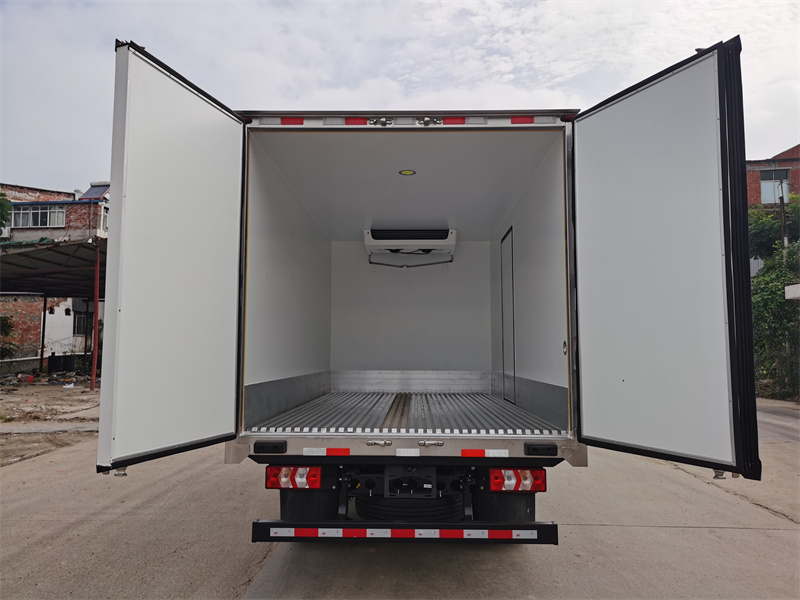 冷藏車箱體是采用國際通用三明治工藝+我廠專利木質(zhì)工藝(龍骨連接鑲?cè)氕h(huán)保防水木材起保溫耐腐蝕作用)、斷橋隔熱技術(shù),生產(chǎn)線是國際最先進18米大型復(fù)合板材生產(chǎn)線,壓板臺面生產(chǎn)前機器自動吸塵干凈,保證壓板機一次壓制成型,其生產(chǎn)設(shè)備及技術(shù)均領(lǐng)先同行業(yè)標(biāo)準(zhǔn),箱體外形美觀,整體質(zhì)量輕,強度高,無滲漏特點,箱體堅固耐用,保溫效果高,保溫效果達到國家A級標(biāo)準(zhǔn)。箱體內(nèi)部可選裝地板通風(fēng)槽,溫濕度記錄儀,肉鉤導(dǎo)軌,擋風(fēng)布等專用設(shè)備。制冷設(shè)備選裝國產(chǎn)或進口制冷機組 。最低溫度可達-18度,可根據(jù)要求進行調(diào)節(jié)。
