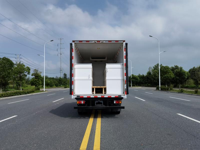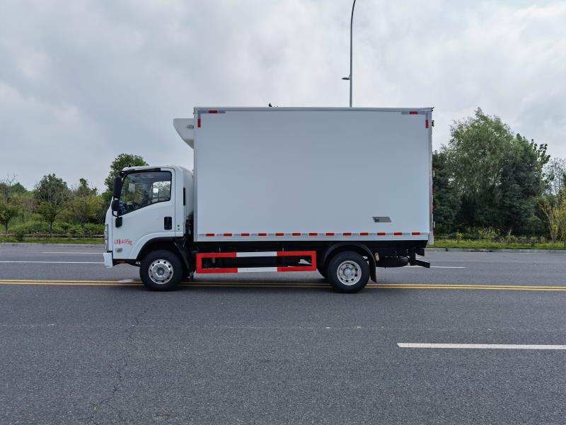五十鈴KV100國六寬體藍牌鮮活魚運輸車上裝配置:冷藏箱體內(nèi)尺寸4020*2100、2050、2000*2200、2150、2100、2050(mm),冷藏箱板是由鍍鋅管骨架加上環(huán)保防水木板一次成型,中間8CM新型環(huán)保輕量化保溫材料,加厚3.0玻璃鋼,高強度粘合劑、熱壓成型,外框采用304不銹鋼、加厚鋁型材包邊、27不銹鋼大門鎖、配件,箱體拼接出來不打膠無縫隙,降溫速度快、散溫慢、保溫效果好,門帶斜邊,副梁是510大梁鋼一次性折成,用壓板鎖緊,側(cè)護網(wǎng)和后保險杠一次性成型。